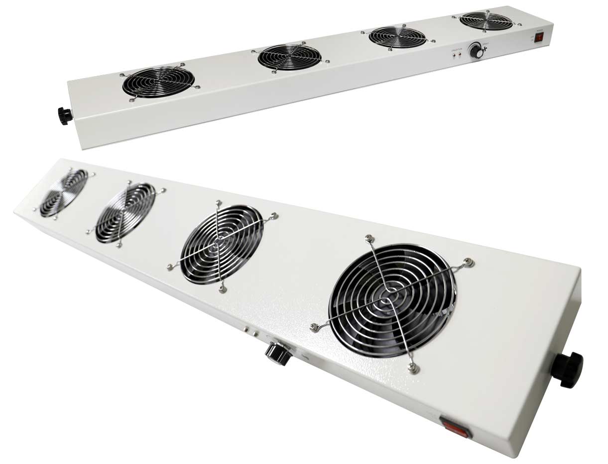 自清潔懸掛式離子風機采用正、負同步發射電極,通過直流高壓產生電暈放電,將空氣分子電離,產生大量正、負極性的空氣離子,并由風扇將其吹向被消物體表面進行靜電消除。